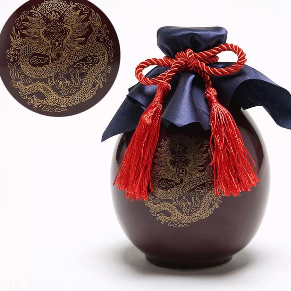 17oz Brown Ceramic Wine Jar Chinese Style Empty Wine Flask Dragon Wine Bottle Small Flagon