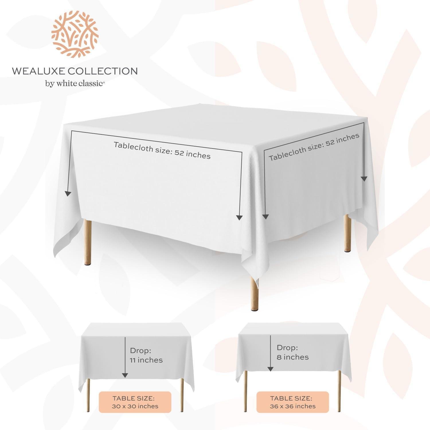 2 Square Tablecloth Covers 52x52 Inch Table Cloths for Square or Round Table 200 GSM Washable Wrinkle Resistant Fabric for Weddings Kitchen Restaurant