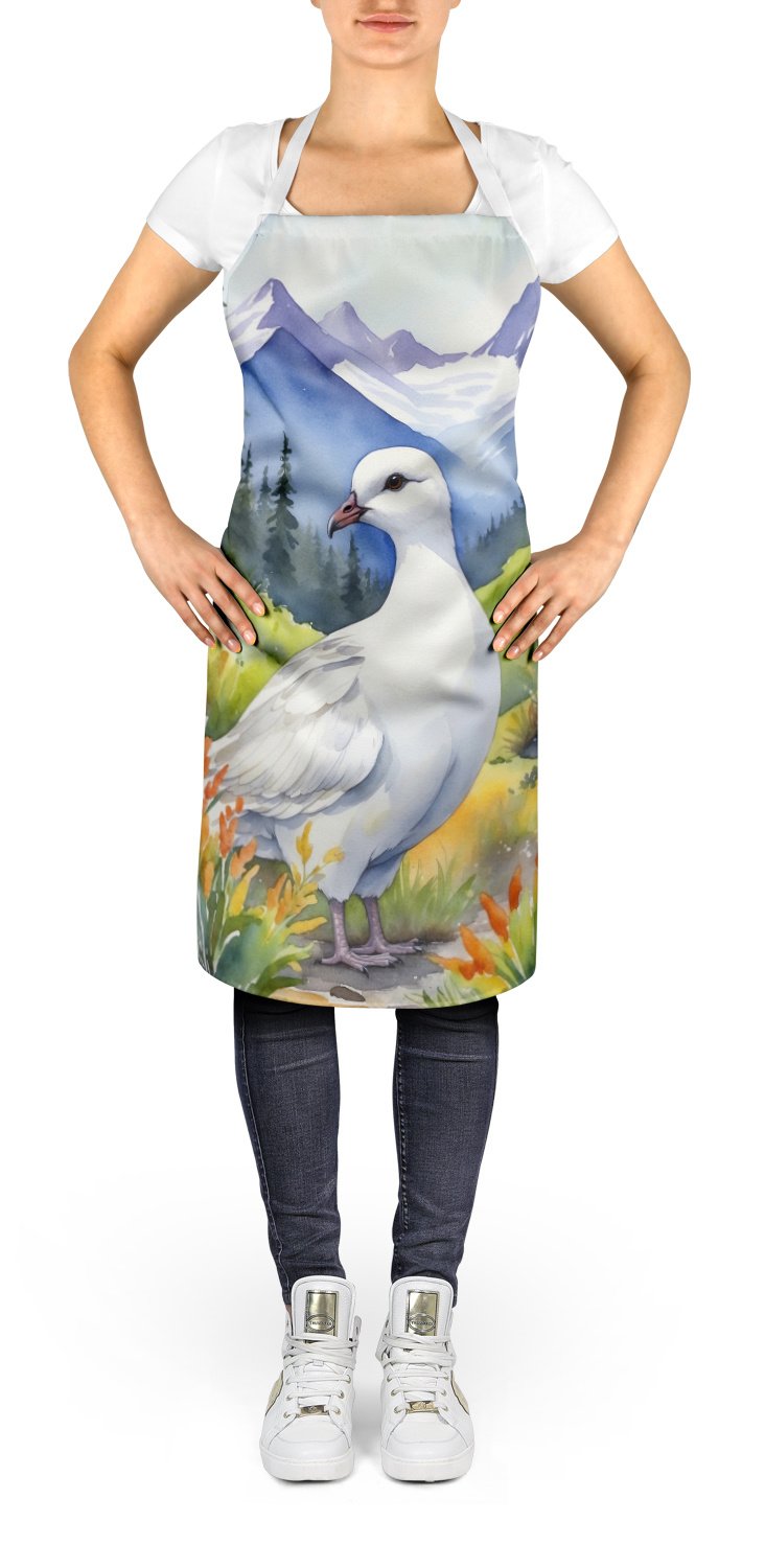 Apron featuring breed specific Willow Ptarmigan artwork. Elevate your cooking, baking, and grilling experiences with our versatile Kitchen or BBQ Apron. This Bib Style apron isn't just limited to culinary activities - it also serves as an excellent baking apron, artist apron, server apron, gardening apron, or even a dog grooming apron. The apron showcases vibrant full-color artwork contributed by one of our talented artists, bringing a dash of style to your daily tasks. With dimensions of approximately 27"W x 30"H, it provides ample coverage to protect your clothing from spills and splashes. Our apron is meticulously crafted from 100% Ultra Spun Polyester, known for its durability and lightweight nature. The apron comes with white tie straps, ensuring a comfortable and adjustable fit for all. It's a perfect choice for kitchen apron enthusiasts, whether you are a woman or a man. Designed for easy maintenance, this apron is fully machine washable. The quick-drying polyester material actively reduces staining, keeping your apron looking fresh and new for longer. Our beautifully designed apron isn't just a functional kitchen accessory - it's a fashion statement in the culinary world!