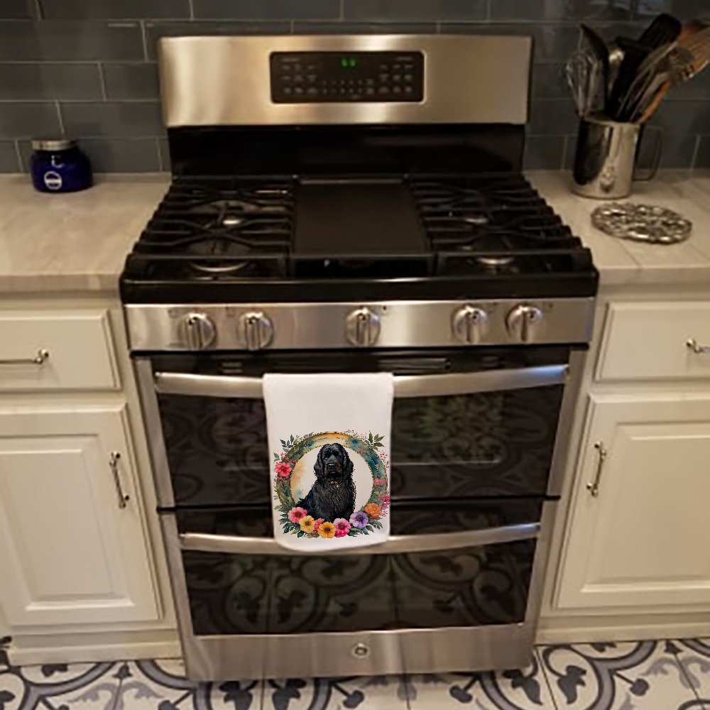 Briard and Flowers Kitchen Towel Set of 2 White Dish Towels Decorative Bathroom Hand towel for Hand, Face, Hair, Yoga, Tea, Dishcloth, 19 X 28", White