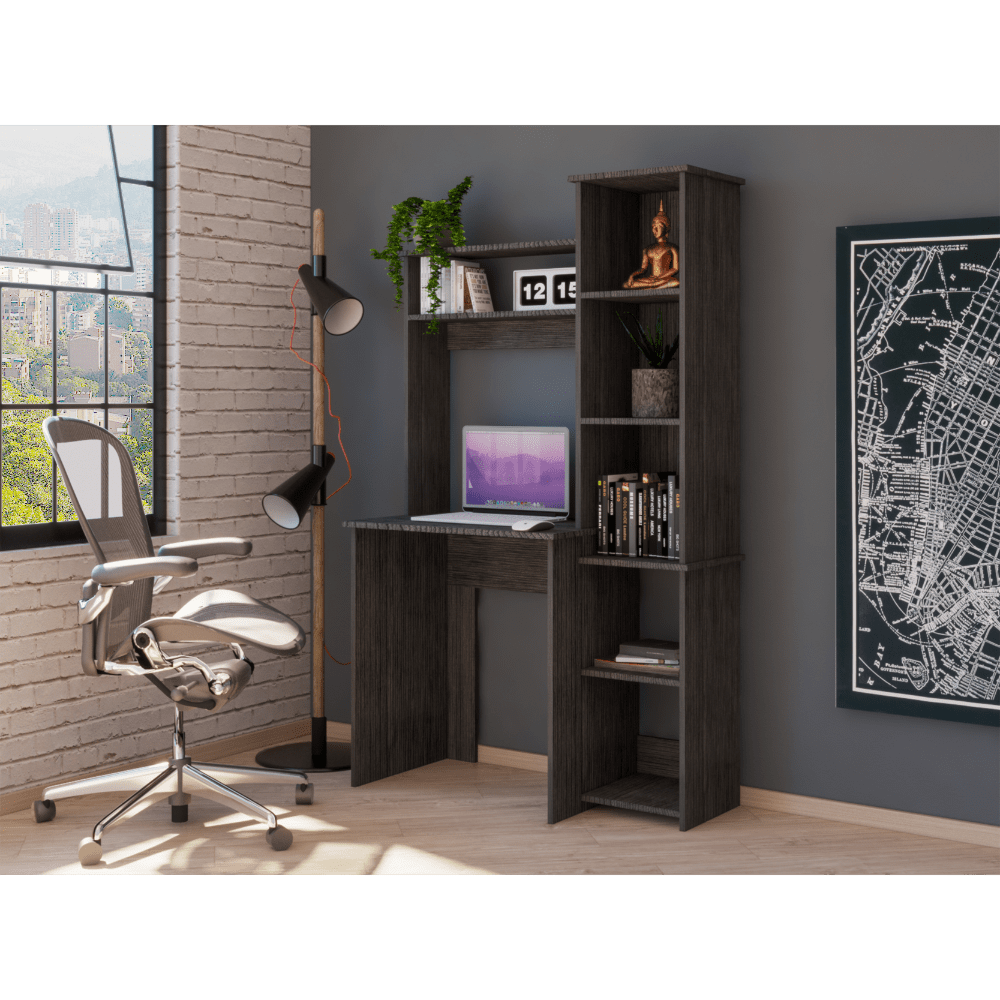 Home > DEPOT E-SHOP Aramis Desk, Five Shelves, Two Superior Shelves, Smokey Oak