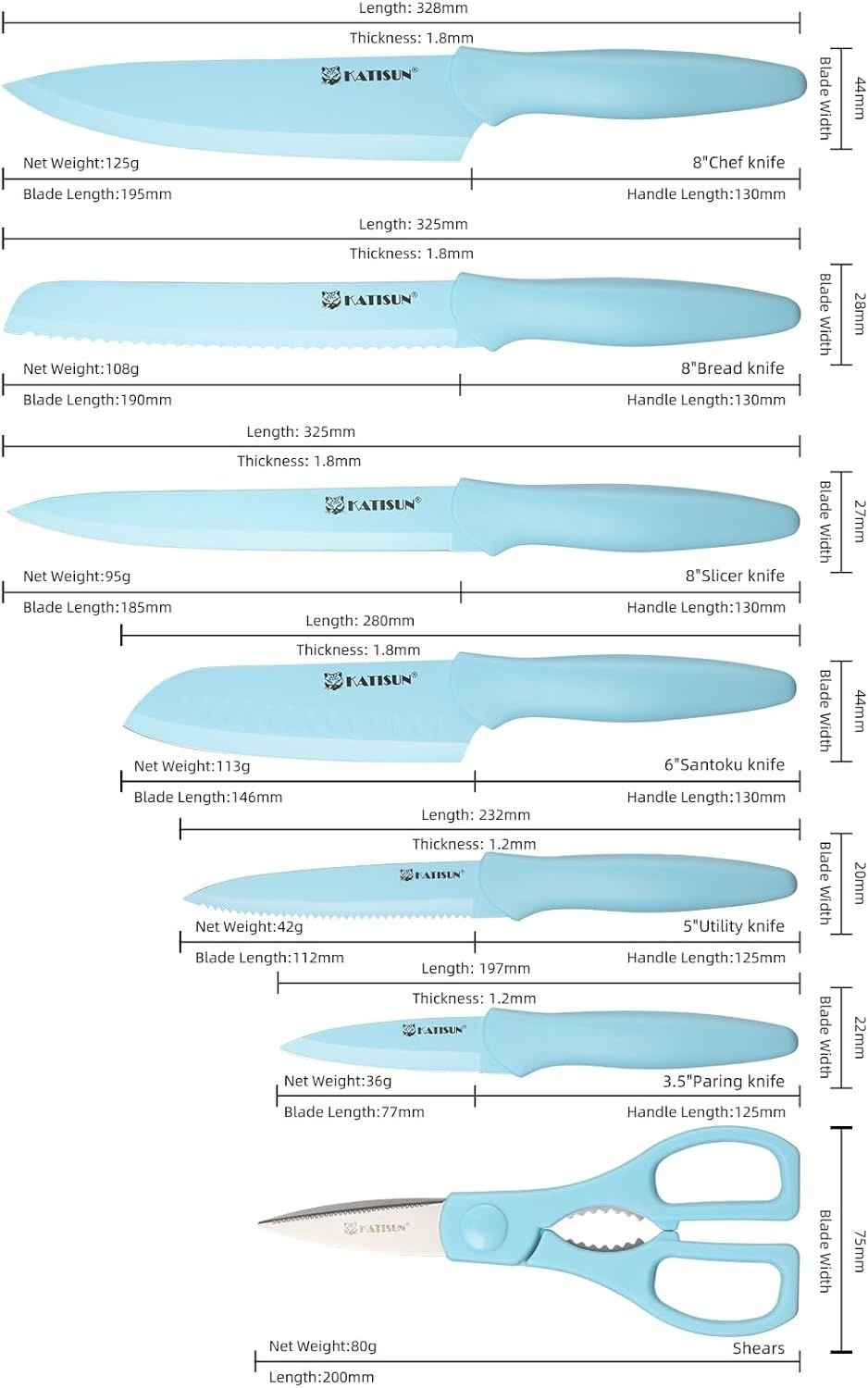 Kitchen Knife Set with Guards, 13 Piece Blue Coated Stainless Steel Boxed Knives Set, Anti-Rust and Dishwasher Safe Kitchen Knife Set with Guards, 13 Piece Blue Coated Stainless Steel Boxed Knives Set, Anti-Rust and Dishwasher Safe Kitchen Knife Set with Guards, 13 Piece Blue Coated Stainless Steel Boxed Knives Set, Anti-Rust and Dishwasher Safe