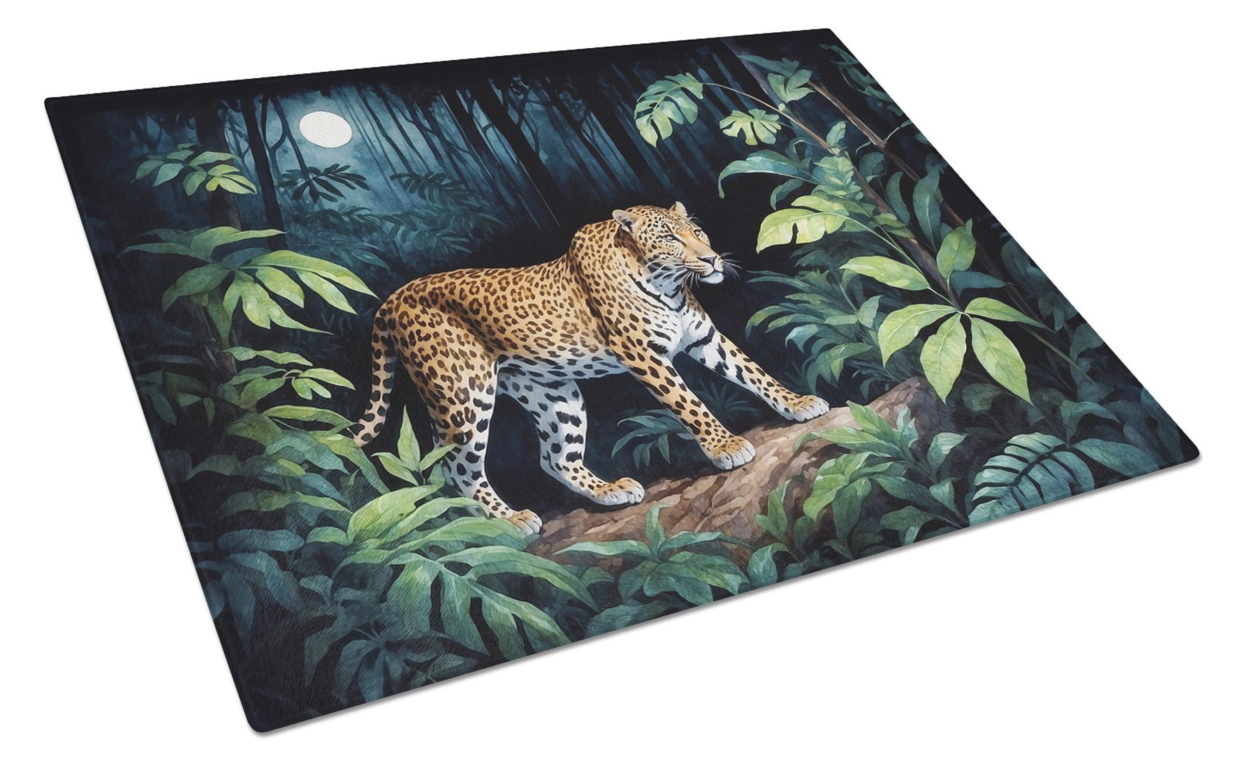 Home > Leopard Nighttime in the Jungle Glass Cutting Board Decorative Tempered Glass Kitchen Cutting and Serving Board Large Size Chopping Board