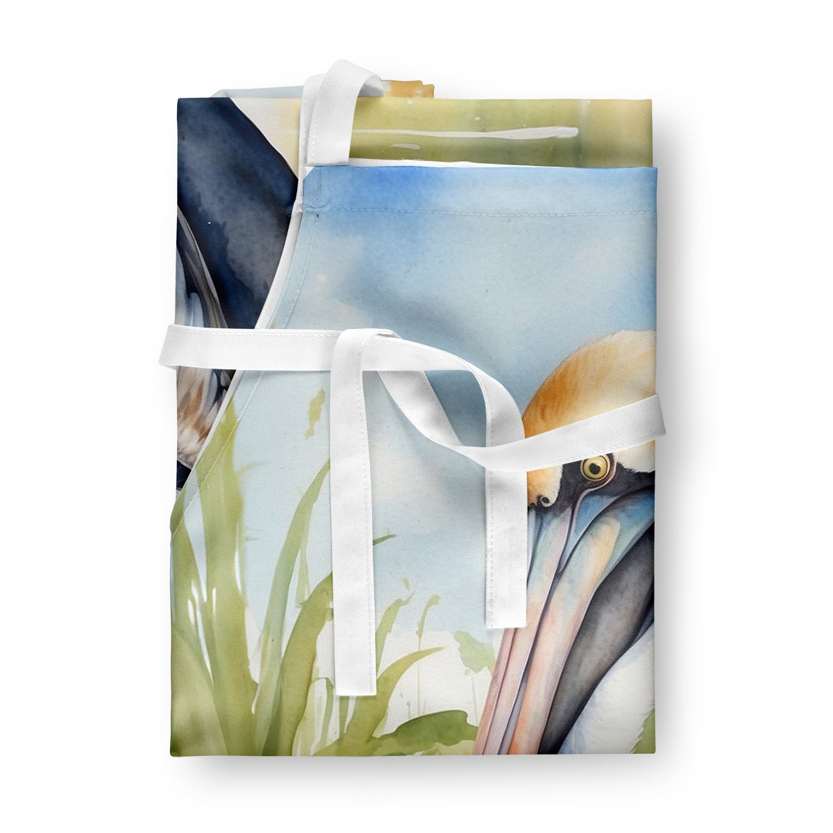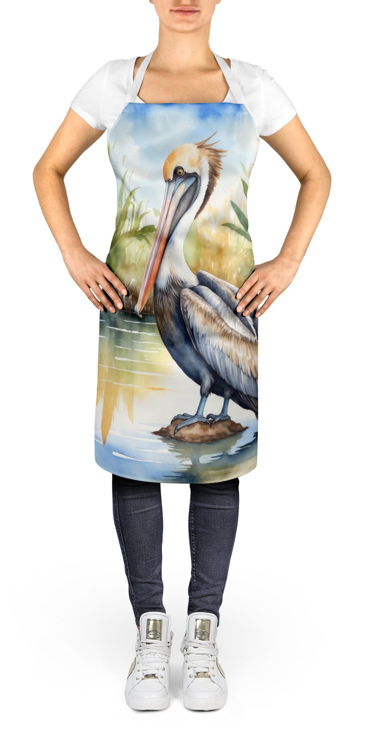 Apron featuring breed specific Brown Pelican artwork. Elevate your cooking, baking, and grilling experiences with our versatile Kitchen or BBQ Apron. This Bib Style apron isn't just limited to culinary activities - it also serves as an excellent baking apron, artist apron, server apron, gardening apron, or even a dog grooming apron. The apron showcases vibrant full-color artwork contributed by one of our talented artists, bringing a dash of style to your daily tasks. With dimensions of approximately 27"W x 30"H, it provides ample coverage to protect your clothing from spills and splashes. Our apron is meticulously crafted from 100% Ultra Spun Polyester, known for its durability and lightweight nature. The apron comes with white tie straps, ensuring a comfortable and adjustable fit for all. It's a perfect choice for kitchen apron enthusiasts, whether you are a woman or a man. Designed for easy maintenance, this apron is fully machine washable. The quick-drying polyester material actively reduces staining, keeping your apron looking fresh and new for longer. Our beautifully designed apron isn't just a functional kitchen accessory - it's a fashion statement in the culinary world!