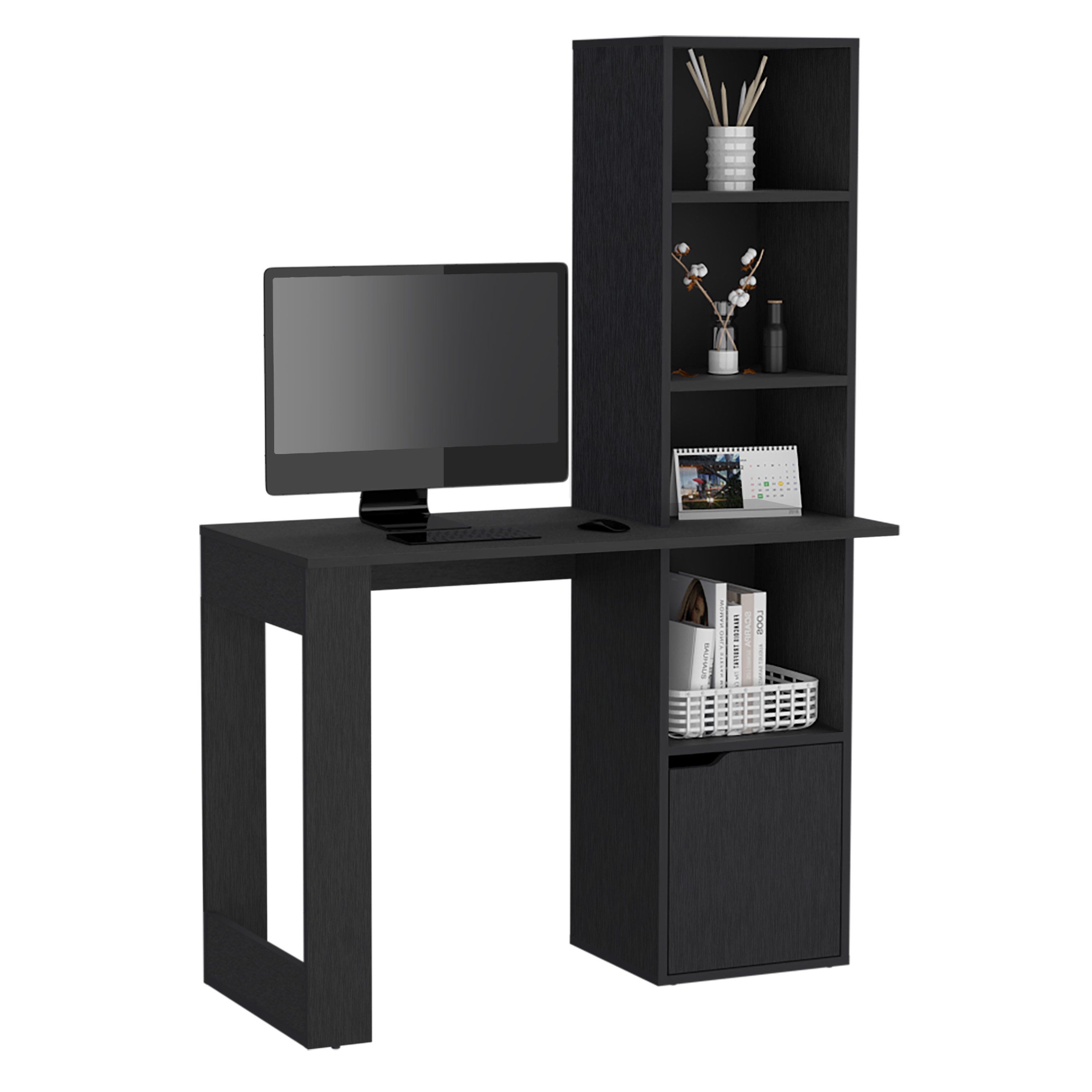 Home > Office Desk Aragon with Four-Tier Bookcase and Lower Cabinet, Black Wengue Finish