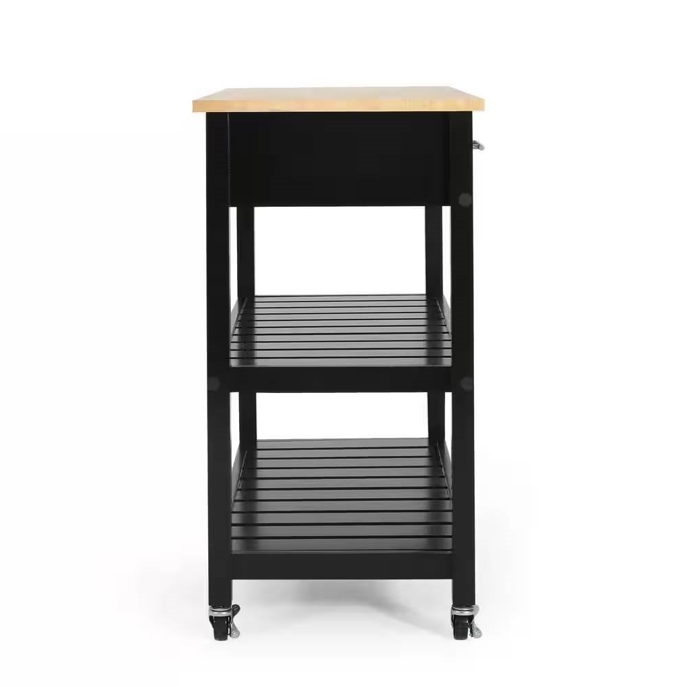 • Modern Black Kitchen Island Cart with Wood Top 2 Drawers and 2 Bottom Shelves