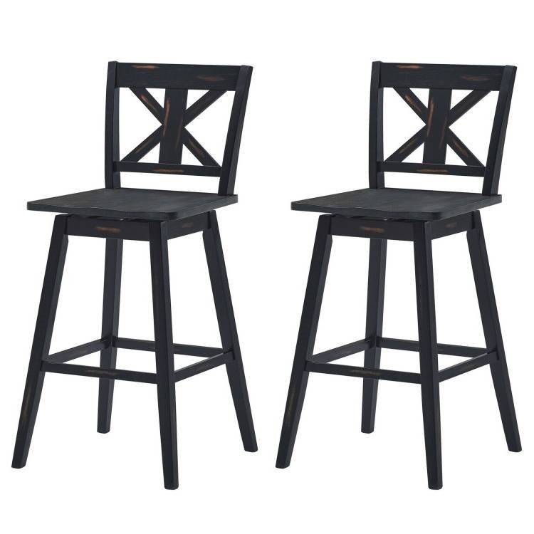 Set of 2 Black Wood 29-in Modern Kitchen Dining Farmhouse Swivel Seat Barstools