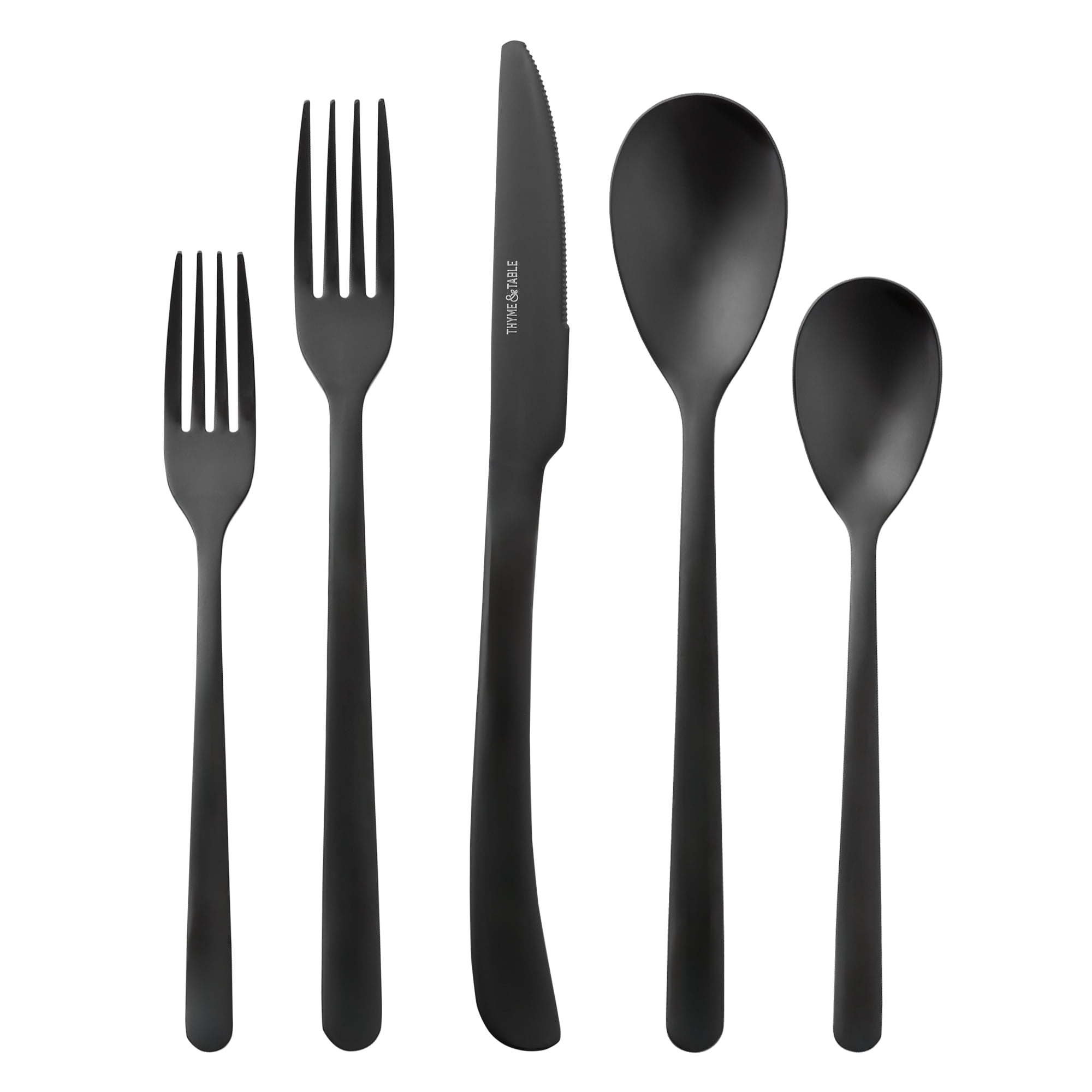 Thyme & Table 20-Piece Arden Stainless Steel Flatware Set, Black Thyme & Table 20-Piece Arden Stainless Steel Flatware Set, Black Thyme & Table 20-Piece Arden Stainless Steel Flatware Set, Black