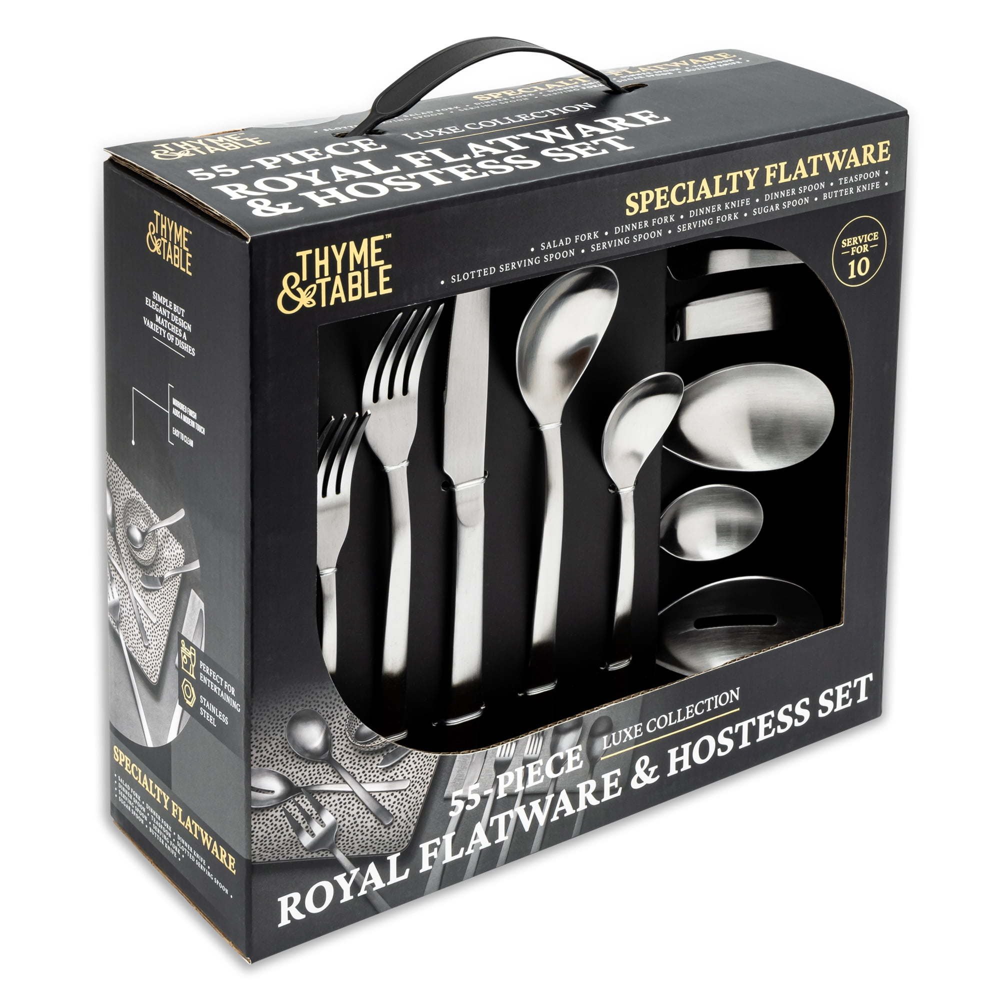 Thyme & Table 55-Piece Royal Stainless Steel Flatware & Hostess Set, Mirror Thyme & Table 55-Piece Royal Stainless Steel Flatware & Hostess Set, Mirror Thyme & Table 55-Piece Royal Stainless Steel Flatware & Hostess Set, Mirror