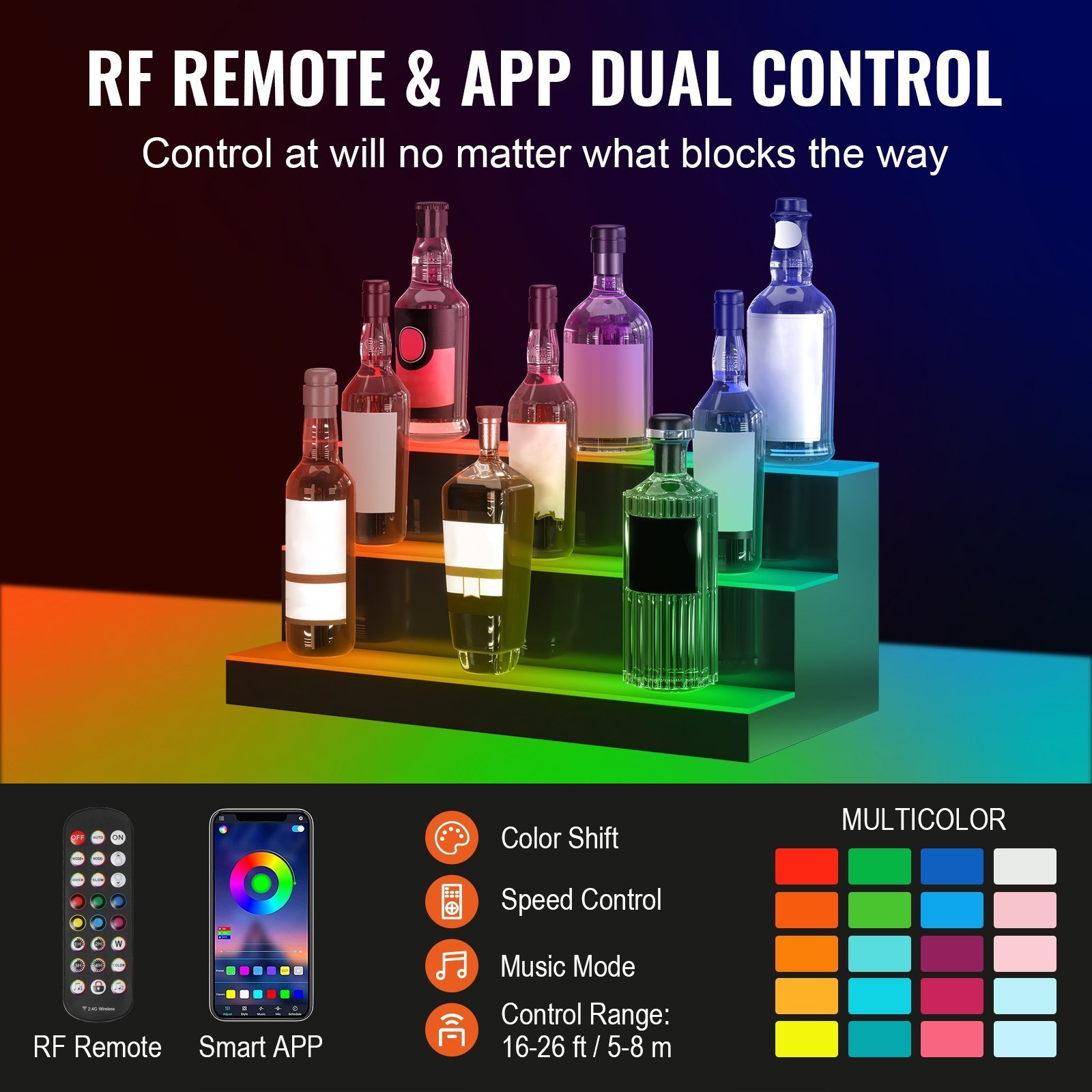 VEVOR LED Lighted Liquor Bottle Display Bar Shelf RF & App Control 24" 3-Step VEVOR LED Lighted Liquor Bottle Display Bar Shelf RF & App Control 24" 3-Step VEVOR LED Lighted Liquor Bottle Display Bar Shelf RF & App Control 24" 3-Step