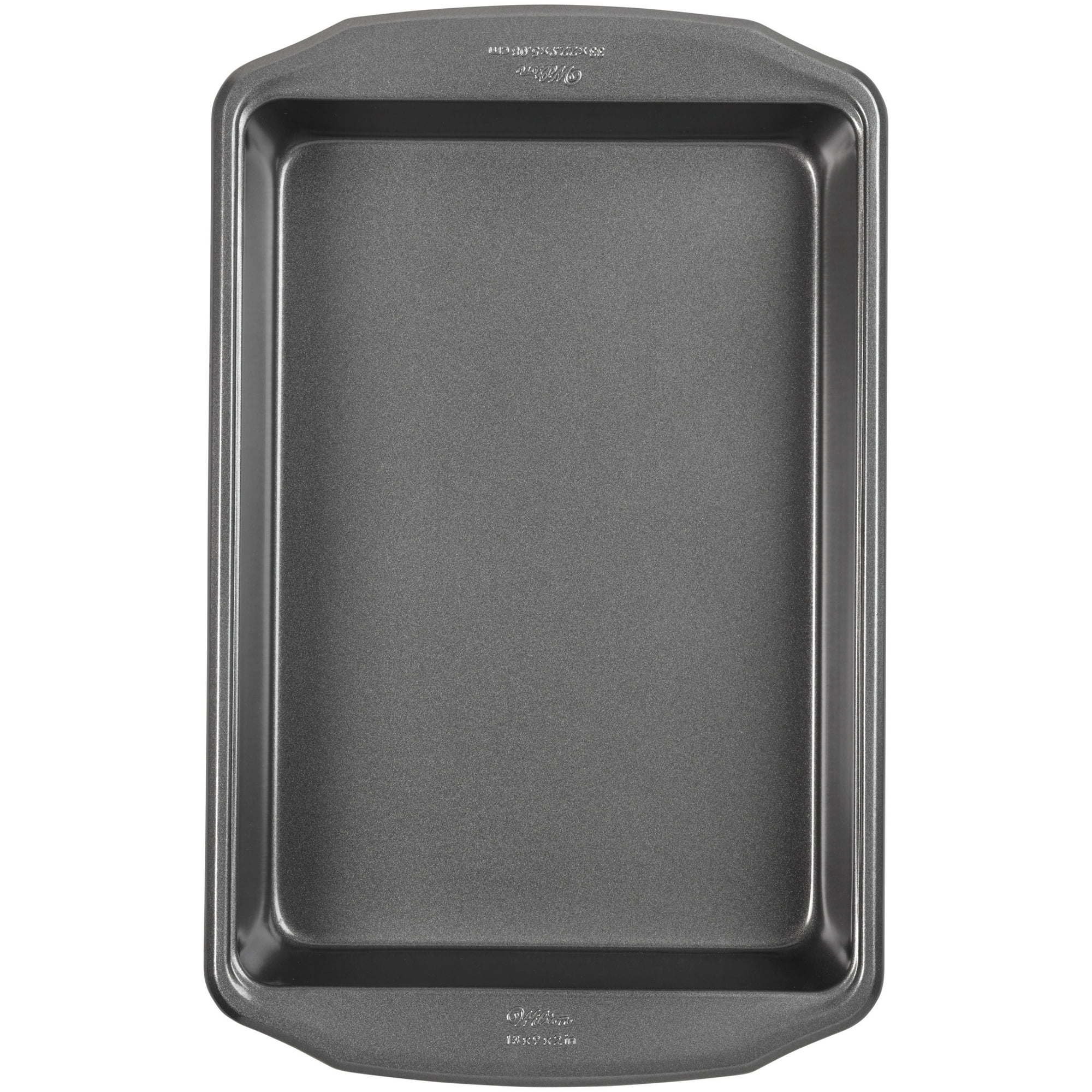 Make cakes worthy of celebrating with this Wilton Bake it Better 9x13 baking pan. Great for sheet cakes, brownies, cookie bars, rice cereal treats and more, this oblong cake pan is a must-have for bakers and decorators. With durable heavyweight steel, this bakeware offers better heating for dependable even heating throughout the years. The ergonomic handles are easier and safer to hold time after time and the long-lasting non-stick coating makes serving and cleanup easy through continued use. Use rectangle cake pans to make a fun birthday sheet cake, or bake up a batch of brownies for a fun weeknight treat. You could even use this pan for savory meals, such as lasagna or casserole.